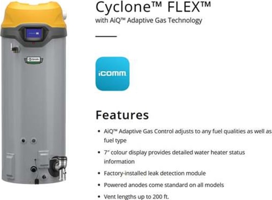 Cyclone FLEX with AiQ Adaptive Gas Technology - https://www.hotwatercanada.ca/cyclone-flex-bth/